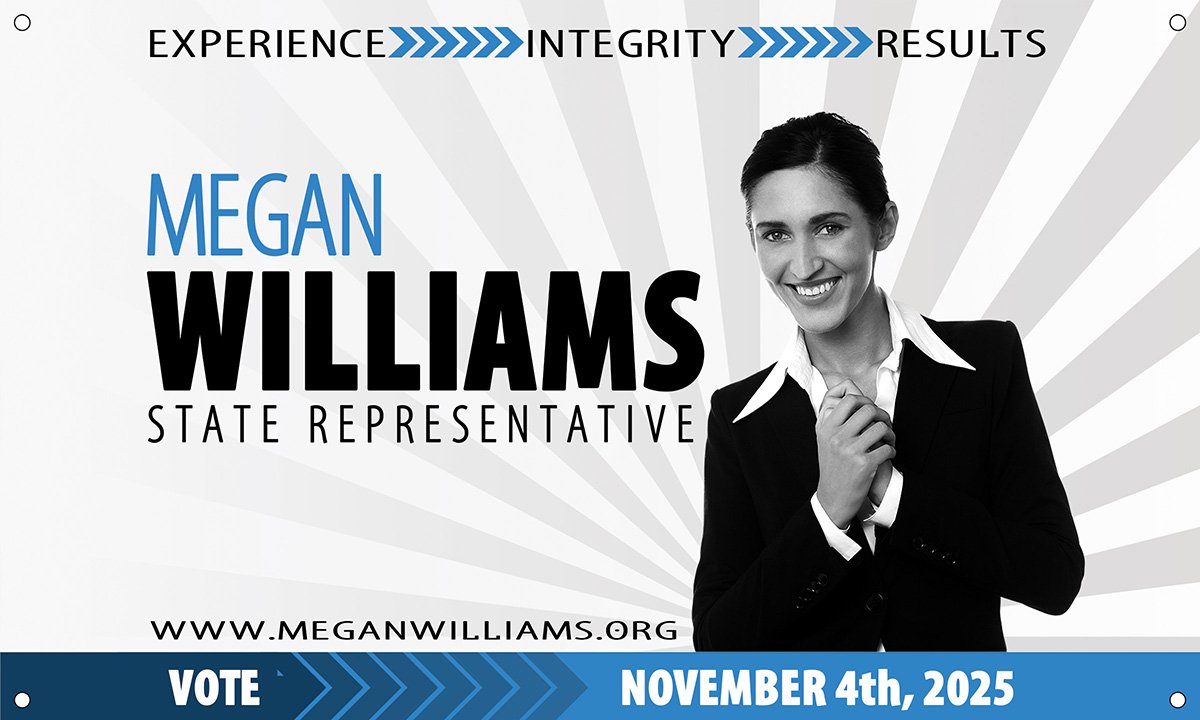 Any Size – Vinyl banner w/ grommets and hemmed seams.